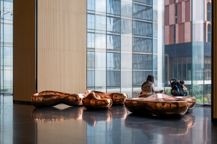Made of durable chrome-plated fiberglass, the installation is structurally ergonomic, with fine-tuned curvature to accommodate users’ physiology. Its functionality and aesthetic mirror the modernity of the business district where it is located. Its designers, Chulalongkorn University architecture students Krittee Wongmaneeroj and Viphob Manopanjasiri, are interested in creating urban components that help promote relationships between people and public places. They started their work process with a user behaviour analysis and proceeded from design to production under the supervision of a team of professionals. This ensured that the final product fulfills the functional and aesthetic requirements of public furniture and contributes to the city’s creative economy promotion.