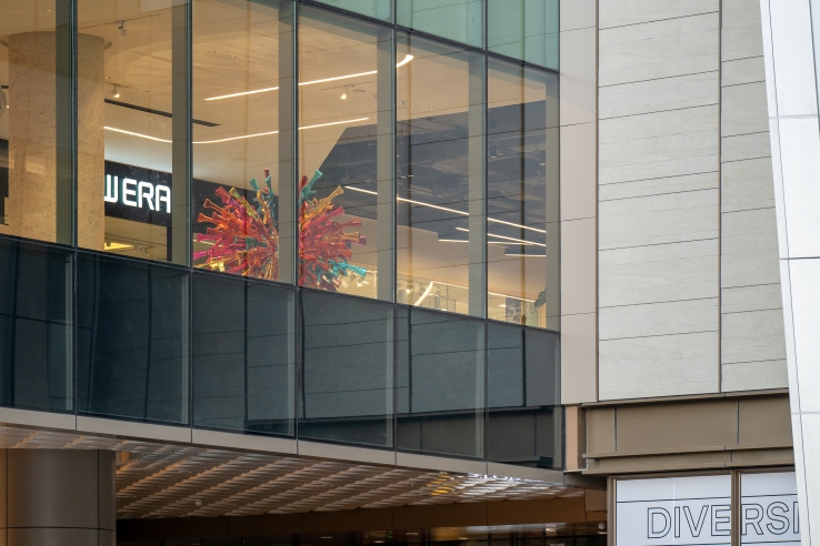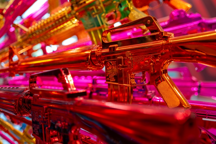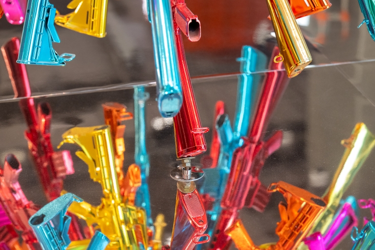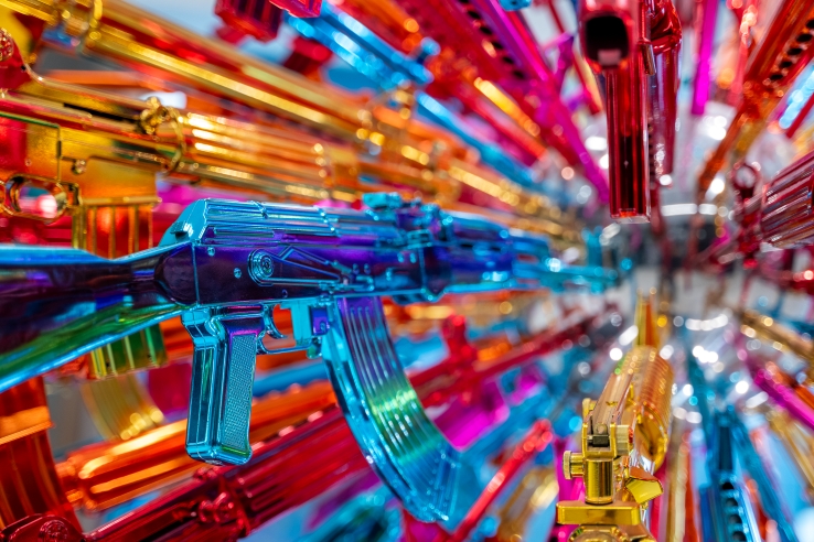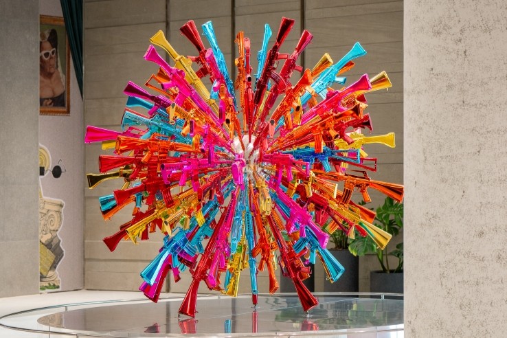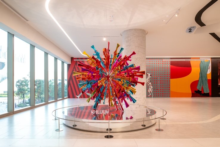 Through the installation, Choi explores the questions of “happiness” and the superficiality and unsustainability of excessive consumerism in contemporary society. The raison d’etre of these objects made up of symbols of violence is, ironically, perhaps to elicit a smile and a fleeting sense of joy in the viewer. The sculpture was first unveiled at the 2018 Bangkok Art Biennale and is now on permanent display on the second floor walkway between Parade and The Storeys in One Bangkok.