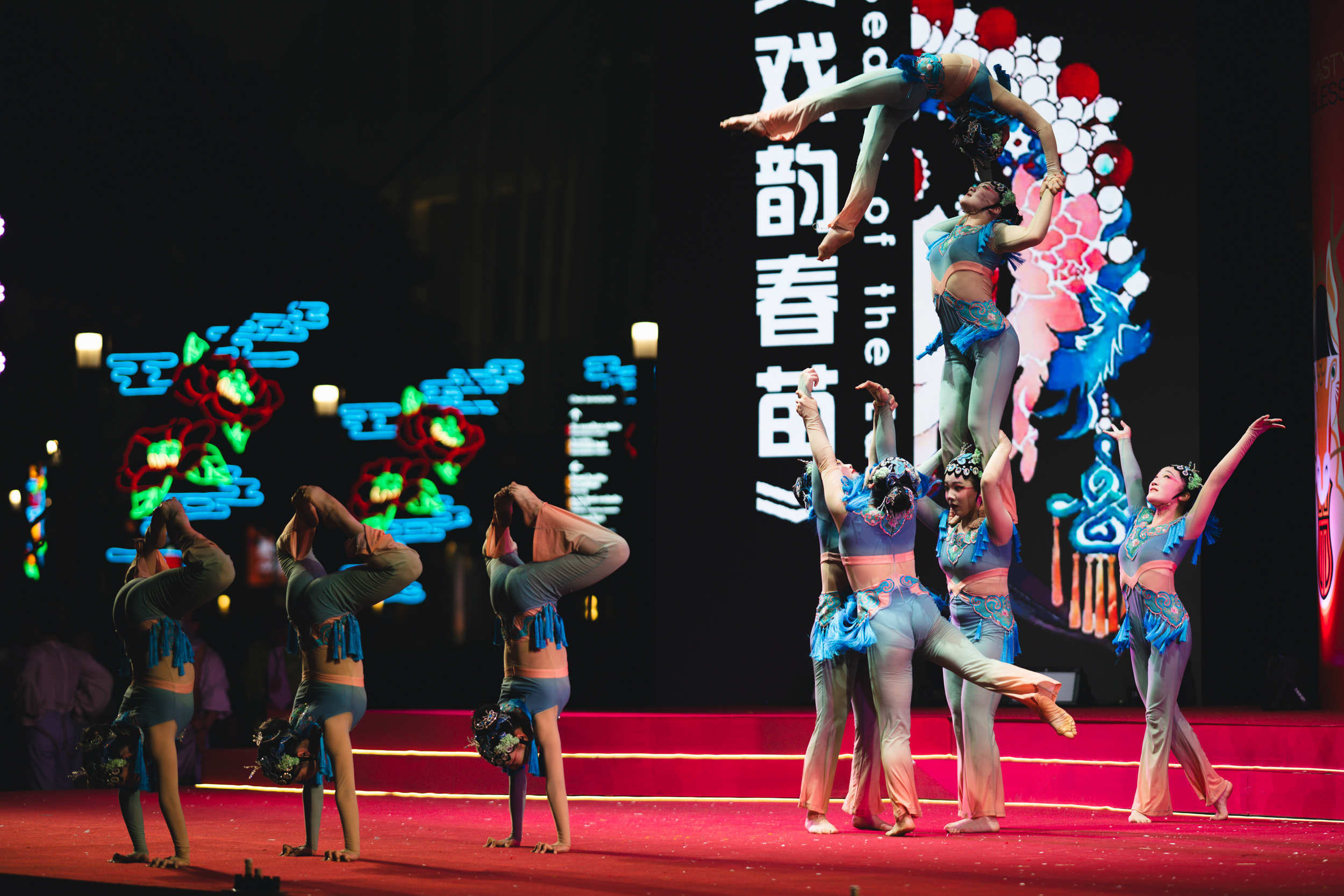 Act: "Heavenly Deities" (Concluding Blessings) – The "Sun God," "Moon Goddess," "Long Ma," and the four auspicious mythical beasts gathered at the main stage, delivering a final display of acrobatics and contemporary dance to bless the audience and impart the invigorating energy of prosperity.