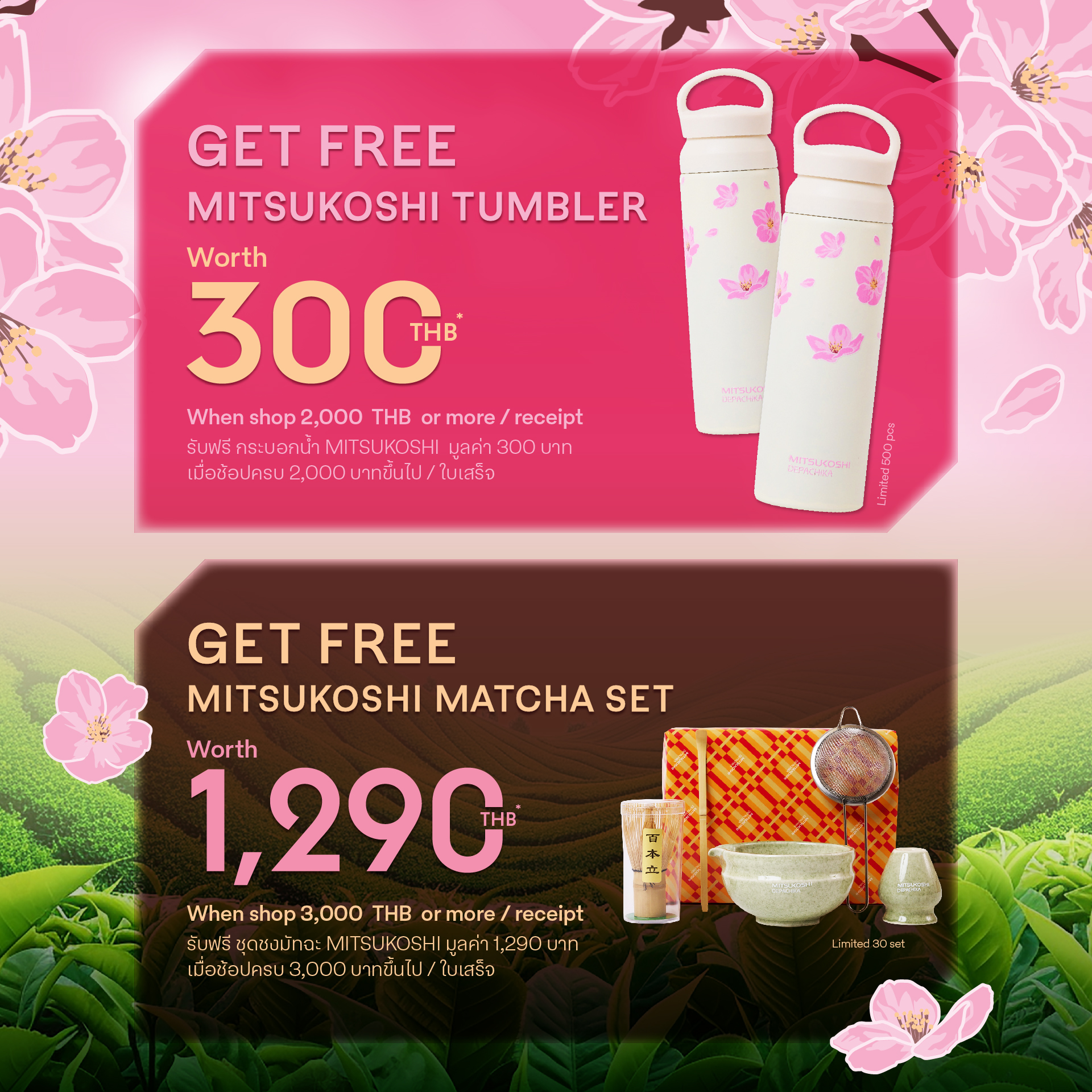 - Gold Members:Receive a complimentary MITSUKOSHI DEPACHIKA Matcha Set valued at 1,290 THB (limited to 30 sets).