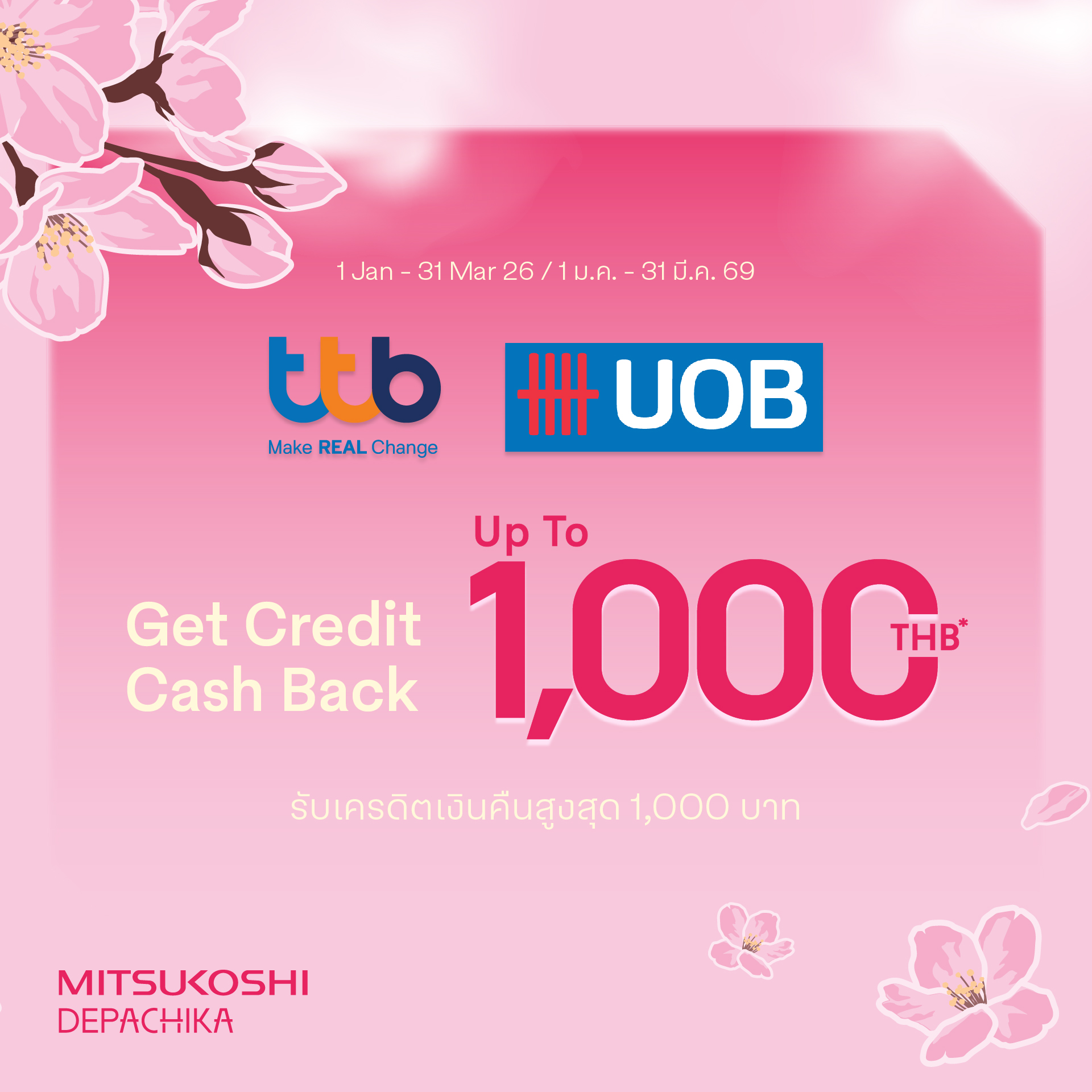 Get credit cash back of up to 1,000 THB (Valid from 1 Jan 2026 – 31 March 2026).