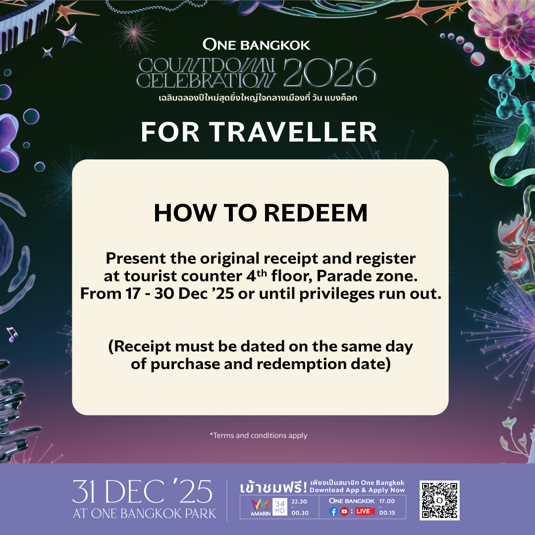 Special for One Bangkok members: Redeem your points for event access through the One Bangkok app from 17 December at 14.00 hrs. until 30 December.