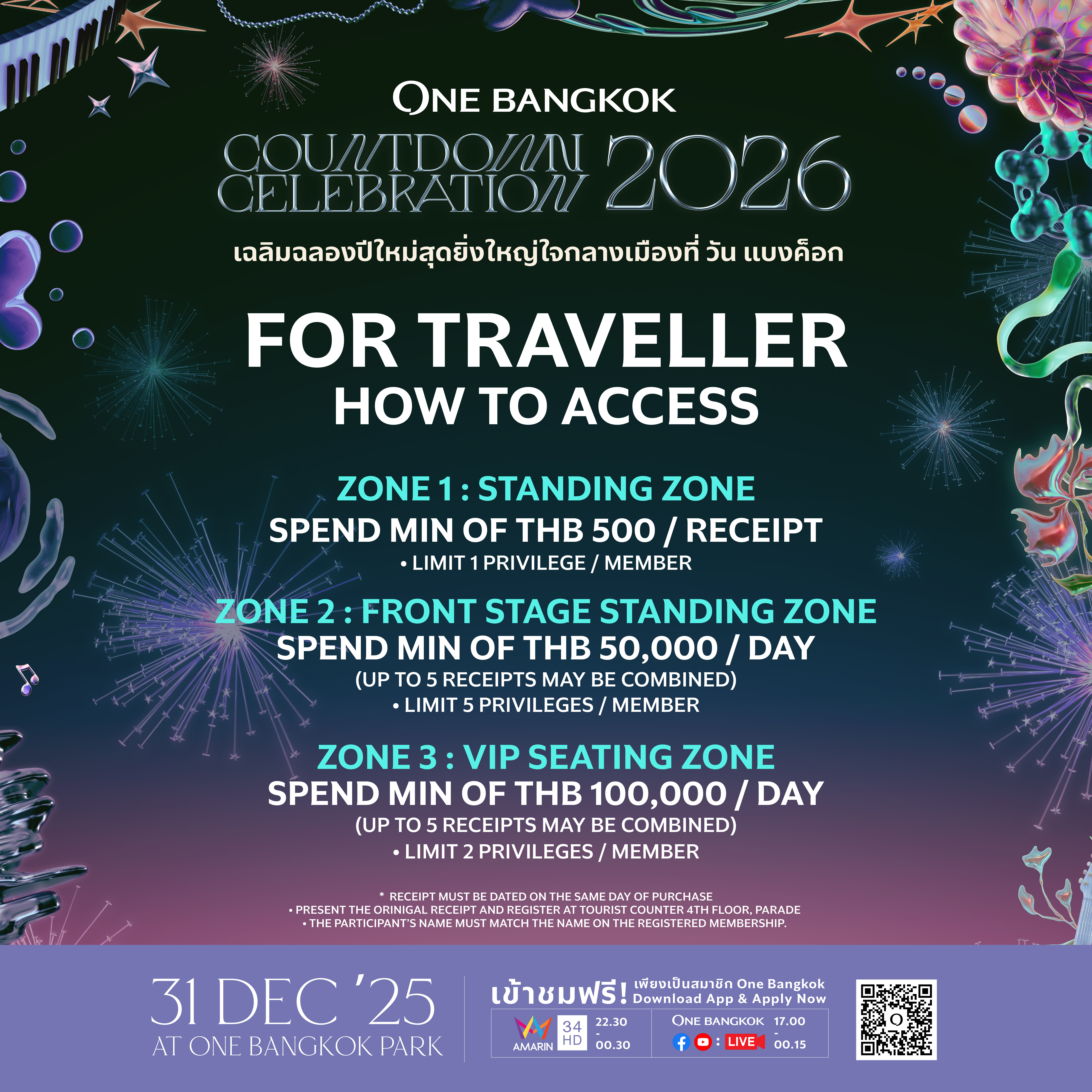 Those interested in attending can download the One Bangkok app and register as members to secure event privileges starting today. Further details on privilege redemption will be announced soon on the One Bangkok and One Bangkok Retail Facebook pages.