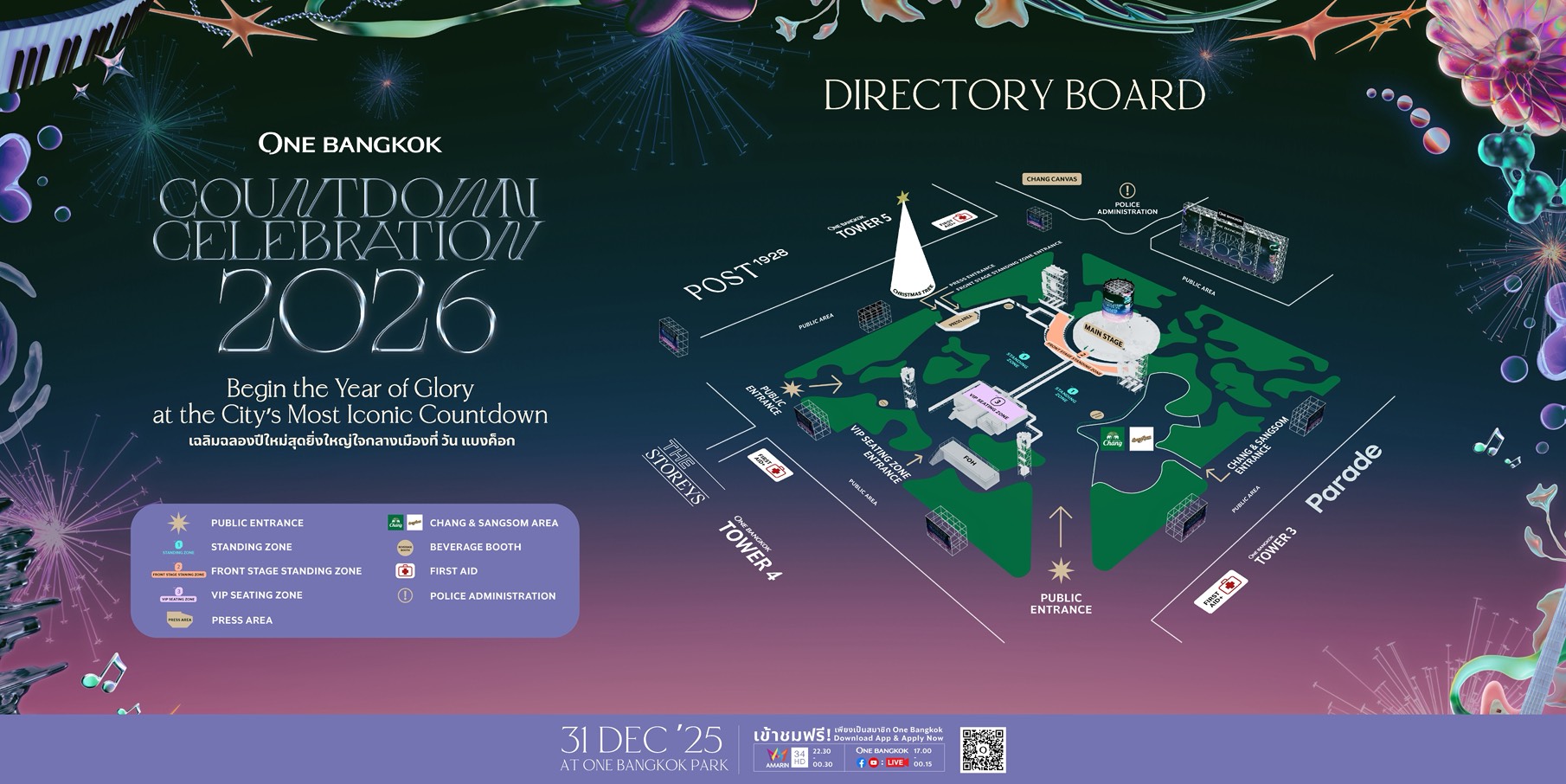 The countdown will also be broadcast live on the One Bangkok Facebook and YouTube channels from 17.00 – 00.15 hrs.