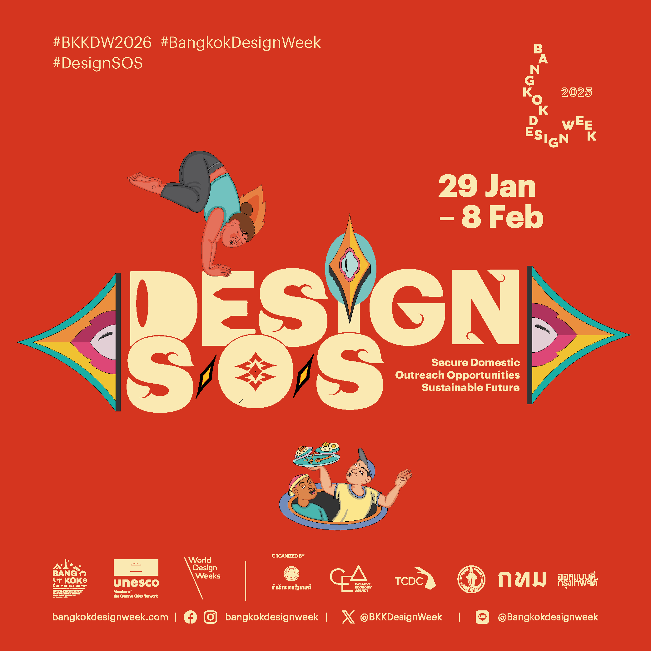 Get Ready for “Bangkok Design Week 2026” Southeast Asia’s Largest Design Festival under the theme Design S/O/S, the festival declares a “Signal of Survival,” emphasizing the role of design as a powerful tool to ensure we “Survive”—creating sustainable businesses, cities, and a better world. The event welcomes all ideas for change in various forms, offering opportunities for people of all generations and fields to connect business networks and expand collaborations to an international stage that goes further than ever before. Date: January 29 – February 8, 2026.