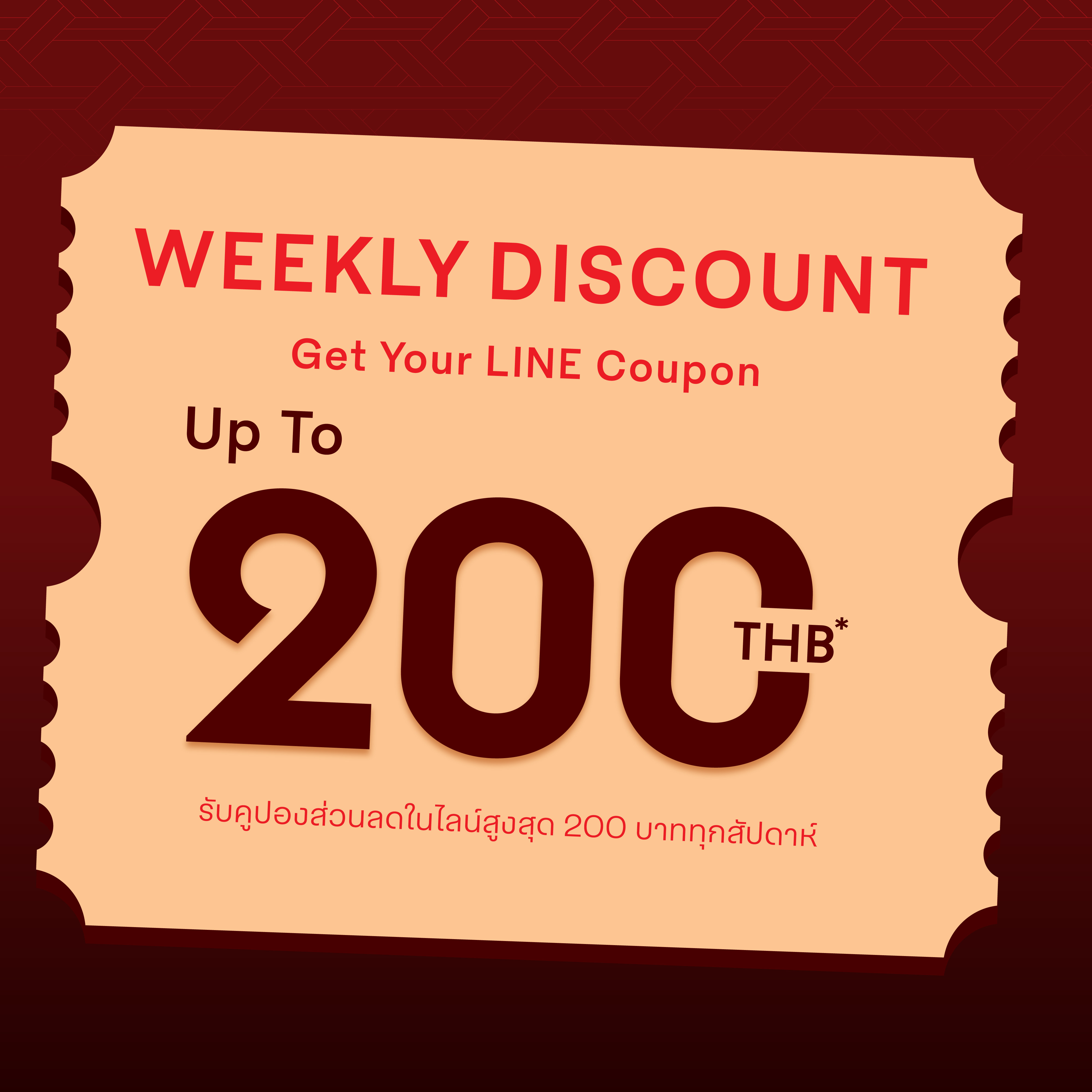 รับคูปองส่วนลดผ่าน LINE สูงสุด 200 บาท ทุกสัปดาห์