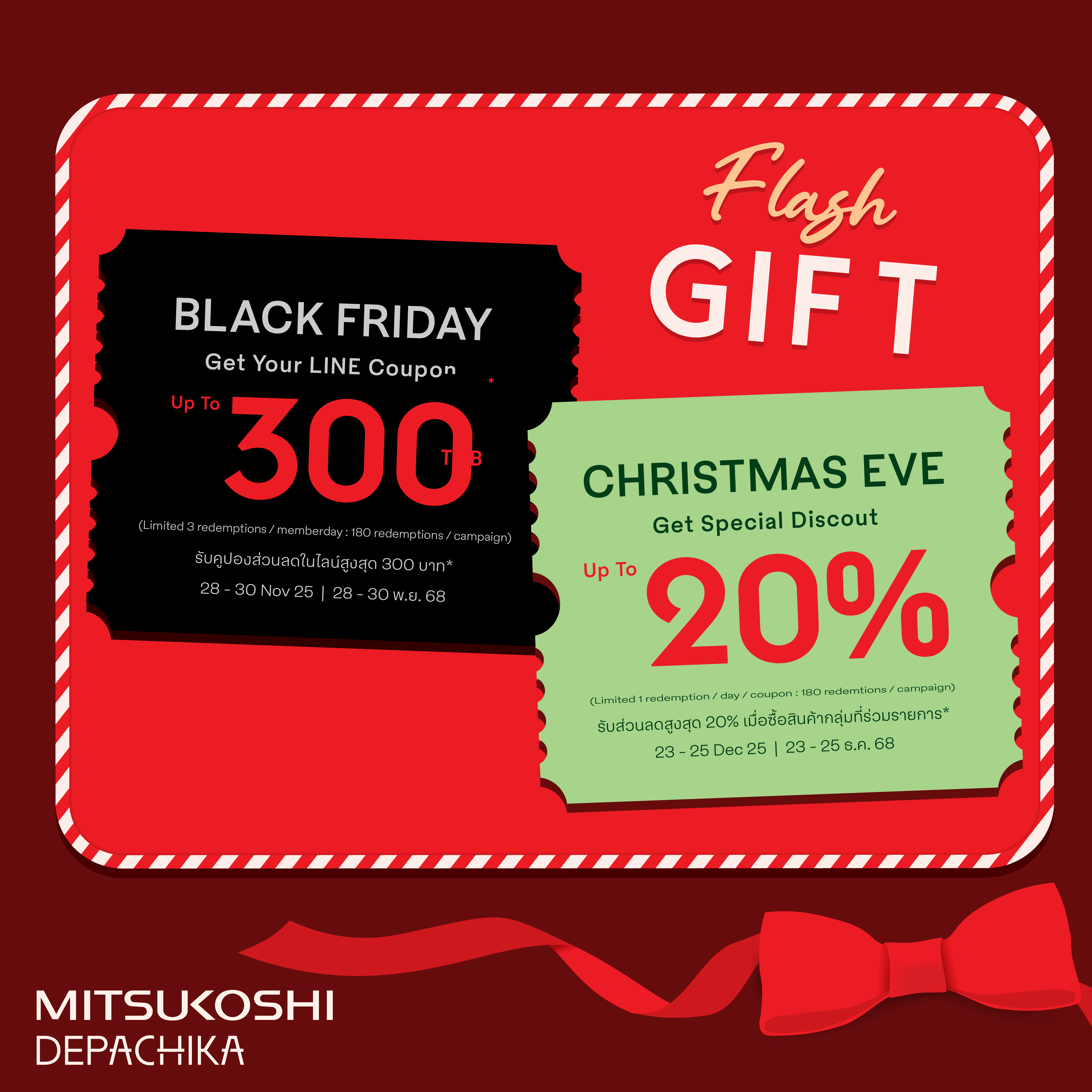 - ระยะเวลาการใช้คูปอง 23 -25 ธันวาคม 2568