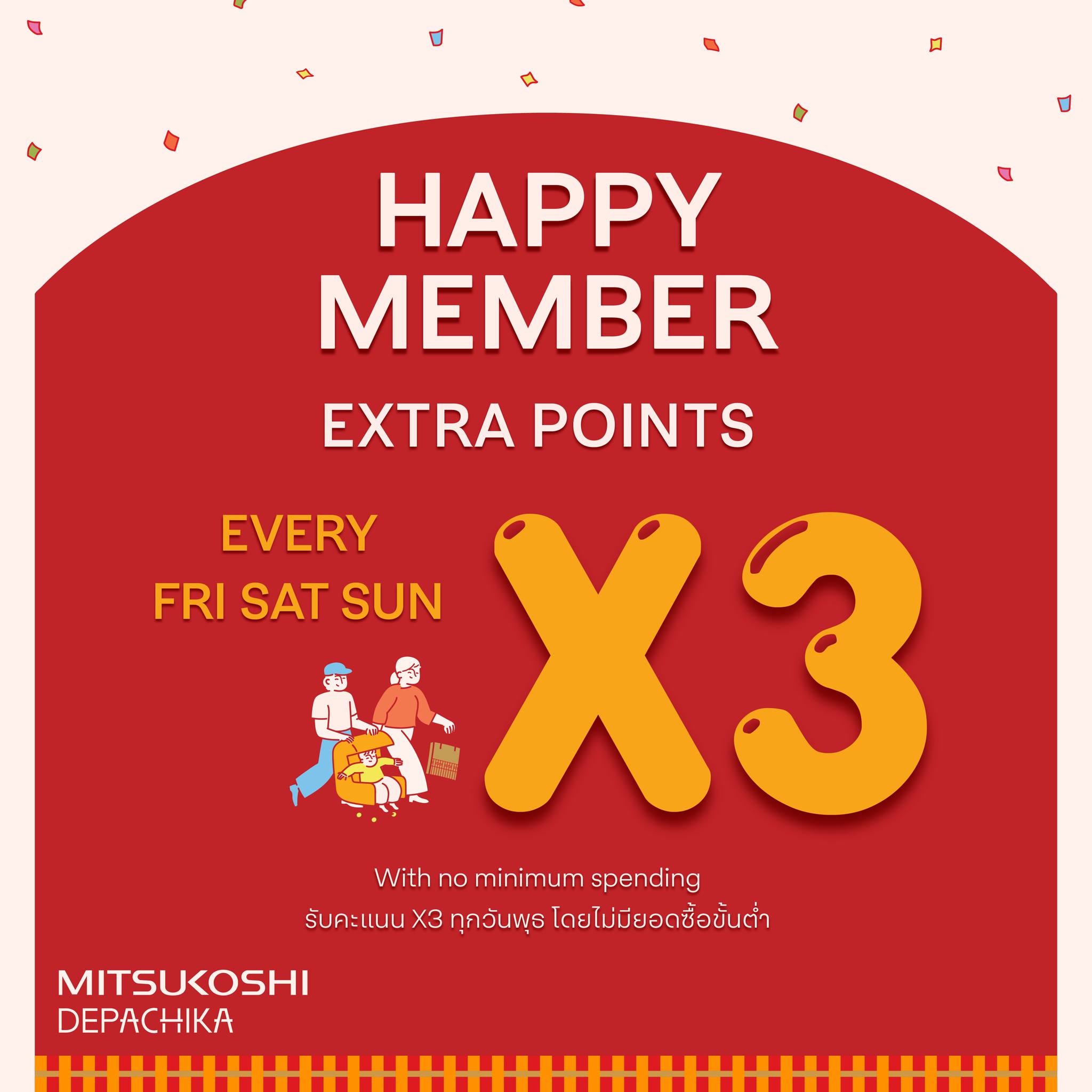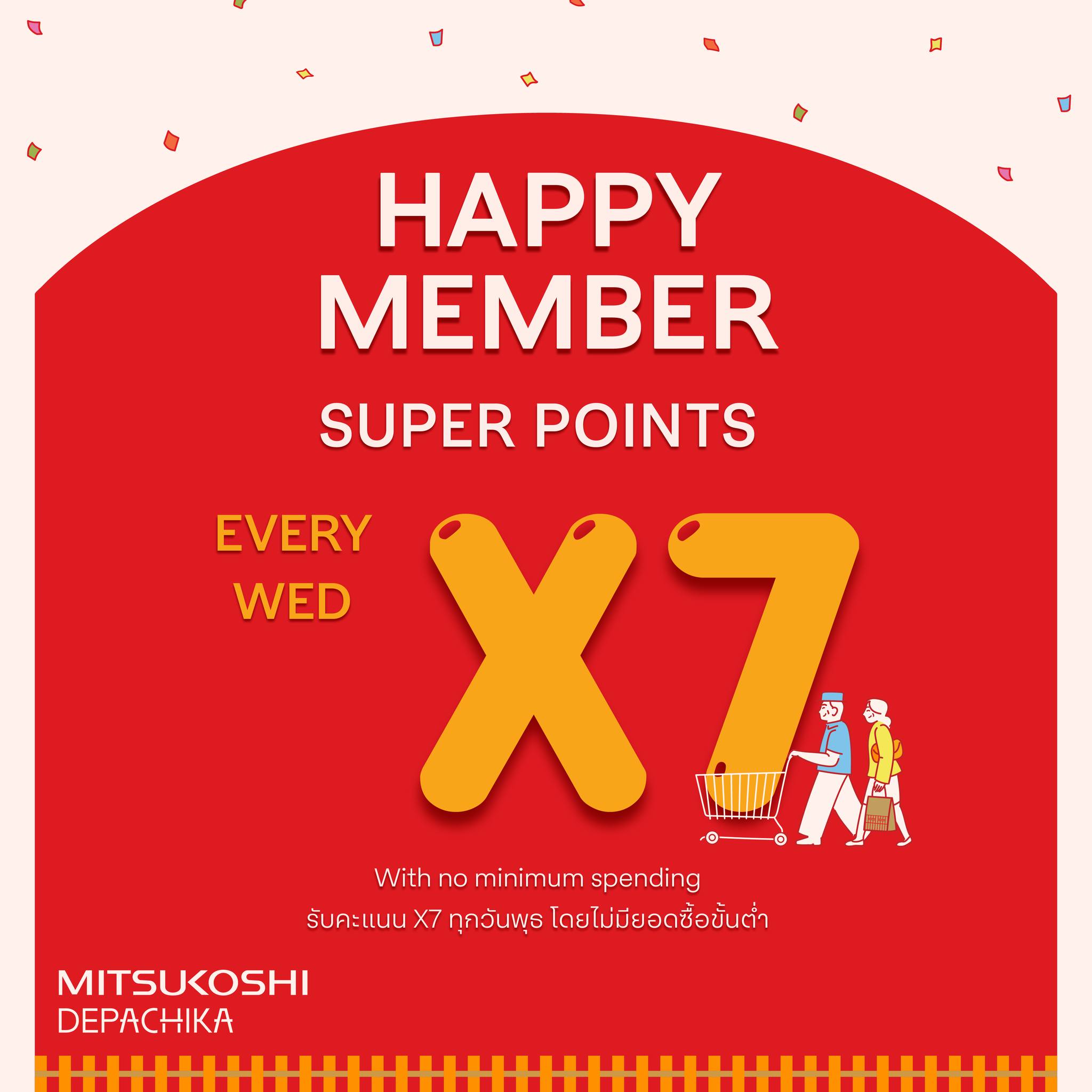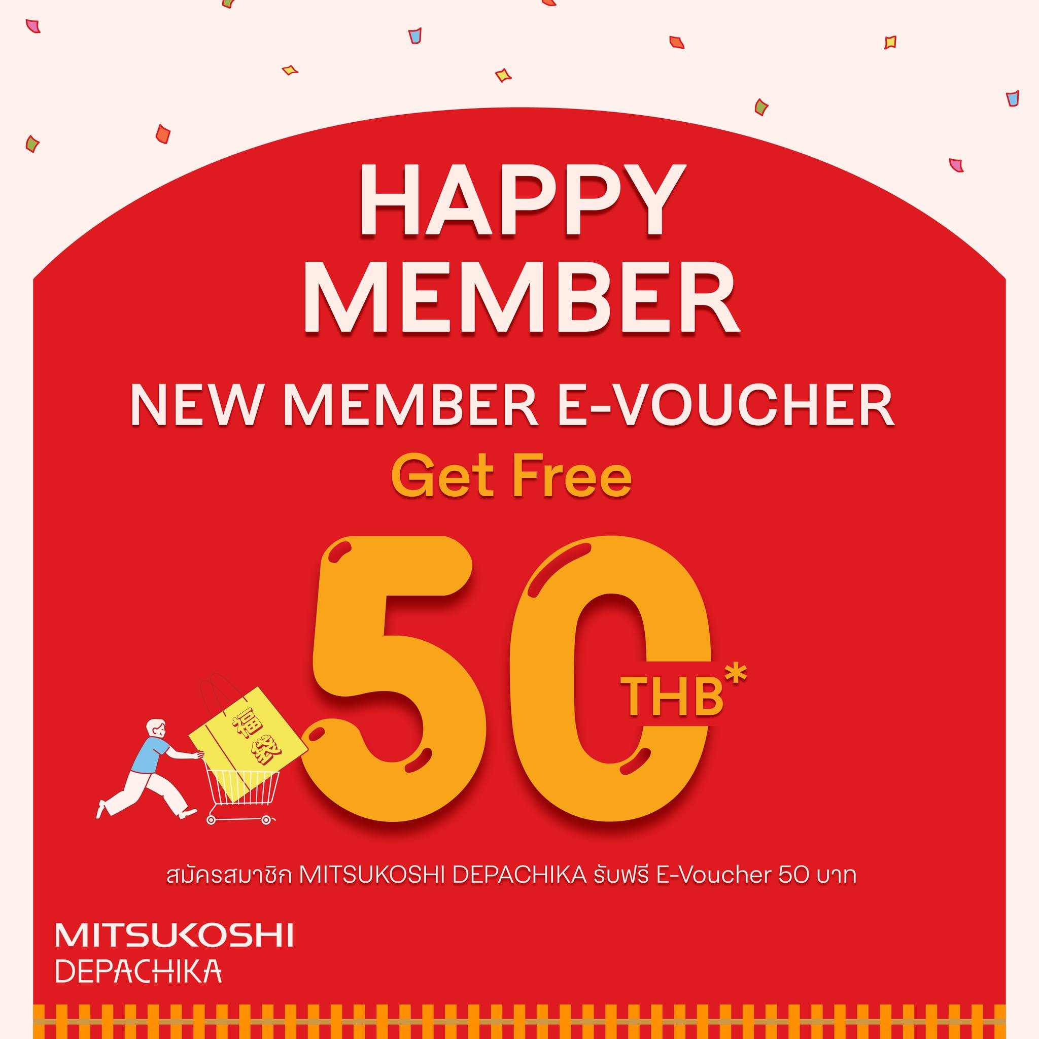 - สมาชิกใหม่ รับฟรี 400 คะแนน สามารถแลกเป็นส่วนลดได้ 50 บาท ที่แคชเชียร์ MITSUKOSHI DEPACHIKA โซนซุเปอร์มาร์เก็ตเท่านั้น