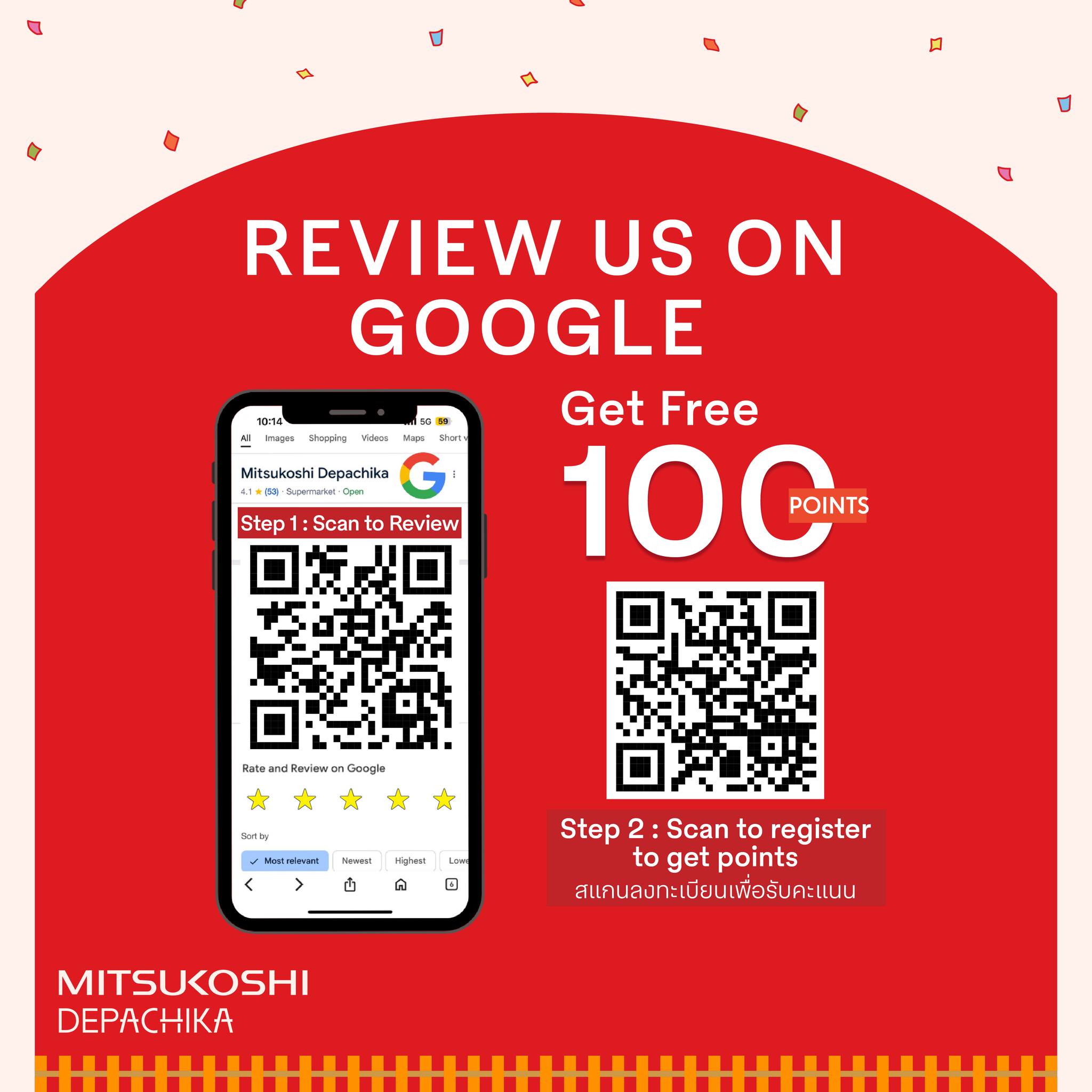 - รีวิว มิตซูโคชิ เดปาจิกะ บน Google รับฟรี 100 พ้อยท์*