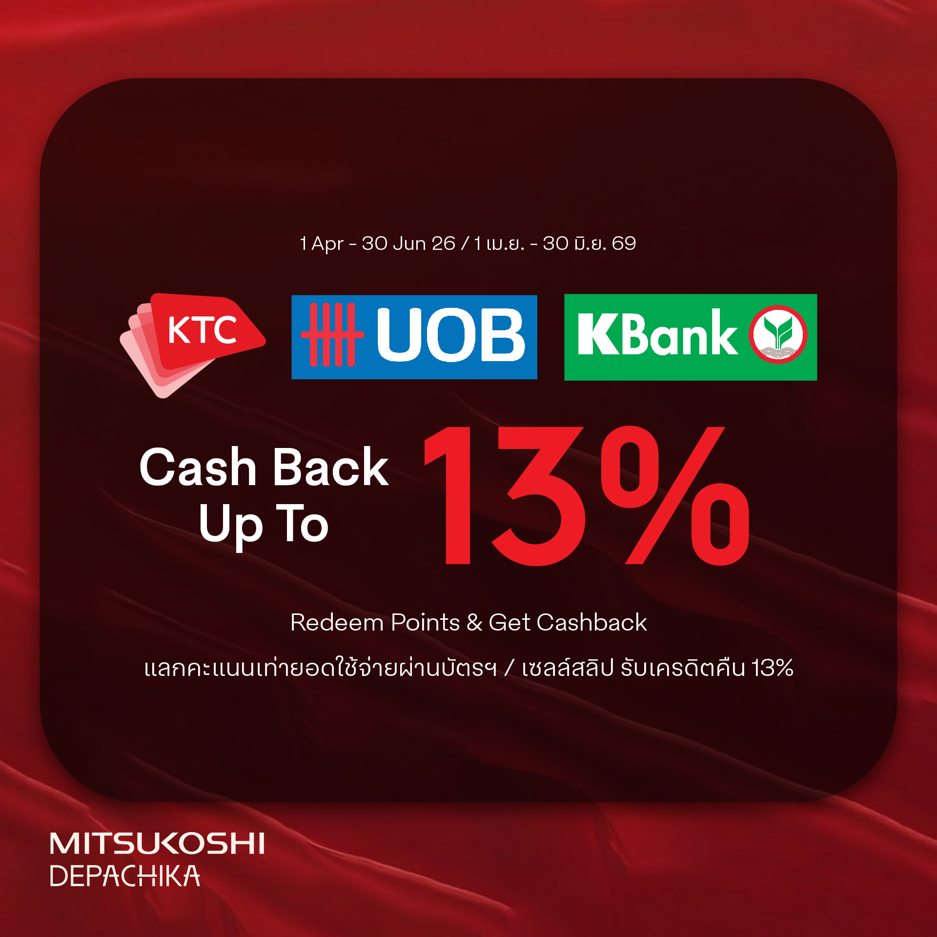 - สอบถามข้อมูลเพิ่มเติมเกี่ยวกับโปรโมชั่นหรือการสะสมและแลกคะแนน สามารถติดต่อได้ที่ LINE "MITSUKOSHI DEPACHIKA TH"