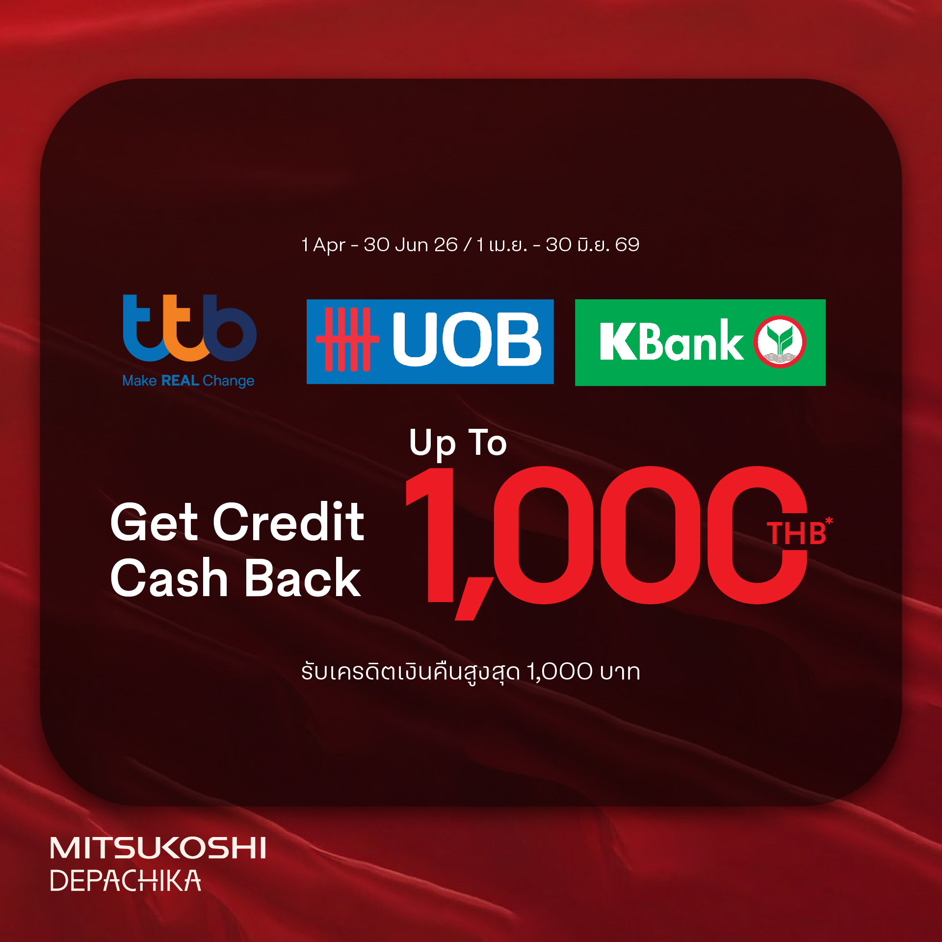 - รับเครดิตเงินคืนสูงสุด 1,000 บาท เฉพาะบัตรเครดิต ttb (บัตรเครดิตทีเอ็มบี บัตรเครดิตธนชาต) บัตรเครดิต ttb Global House และบัตรเครดิต ttb Disney ประเภทบุคคลธรรมดาเท่านั้นยกเว้น บัตรเครดิตองค์กรทุกประเภท
