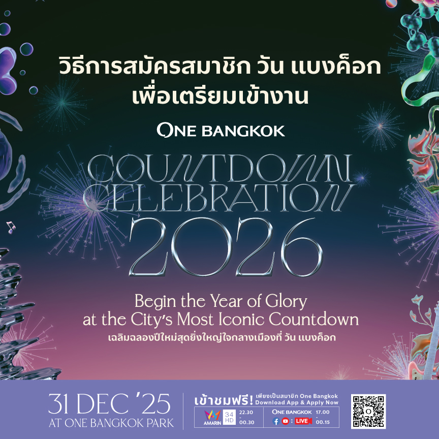 “One Bangkok Countdown Celebration 2026” ในวันที่ 31 ธันวาคม 2568 ที่ วัน แบงค็อก พร้อมโชว์จากศิลปินไทยชื่อดังมากมาย และศิลปินต่างชาติที่จะมาเซอร์ไพรส์ทุกคน พิเศษ เฉพาะสมาชิก วัน แบงค็อก เท่านั้น