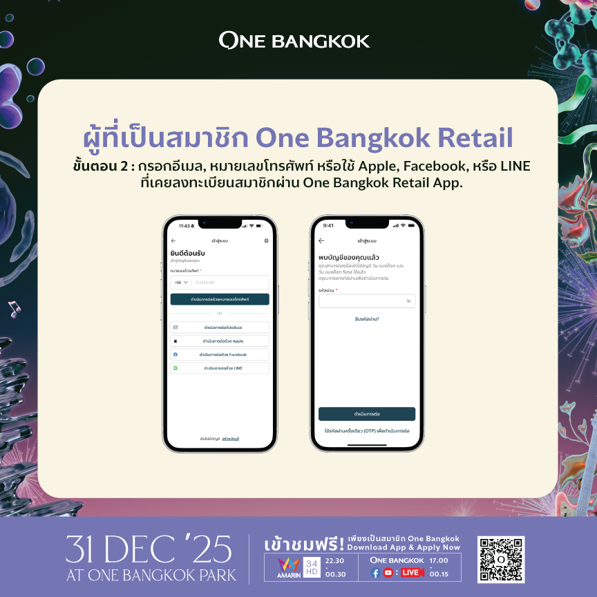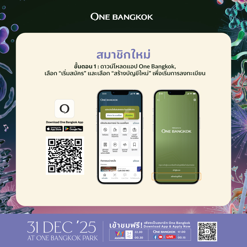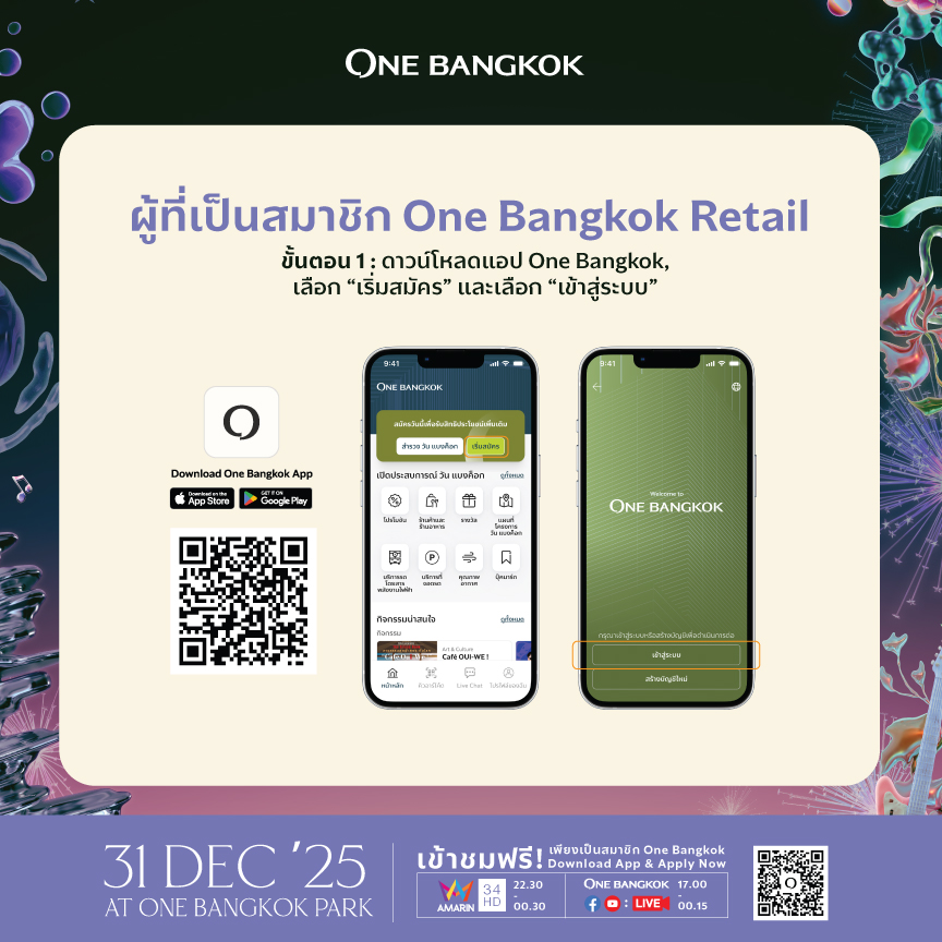 ผู้ที่สนใจเข้าร่วมงาน สามารถดาวน์โหลดแอปพลิเคชัน One Bangkok พร้อมสมัครสมาชิก เพื่อเตรียมรับสิทธิเข้างานได้แล้วตั้งแต่วันนี้ สำหรับรายละเอียดในการแลกรับสิทธิ สามารถติดตามได้ที่ Facebook ของ One Bangkok และ One Bangkok Retail เร็ว ๆ นี้